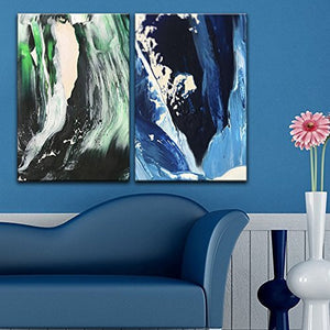 2 Panel Canvas Wall Art - Abstract Green and Blue Color Composition - Giclee Print Gallery Wrap