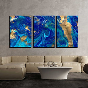 3 Piece Canvas Wall Art - Marbled Blue Abstract Background. Liquid Marble Pattern. Framed Ready to Hang - 24"x36"x3 Panels