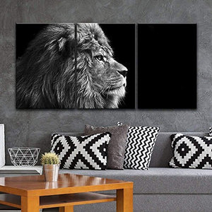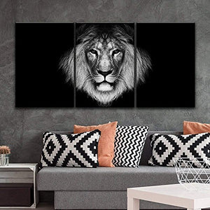 3 Panel Canvas Wall Art - Lion Head on Black Background - Giclee Print Gallery Wrap Ready to Hang