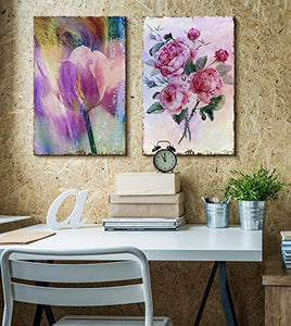 2 Beautiful Tulip on a Brush Stroke Background Paired with Watercolor Bouquet - Canvas Art