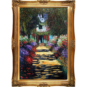 Hand-Painted Reproduction of Claude Monet Garden Path at Giverny Framed Oil Painting, 24 x 36