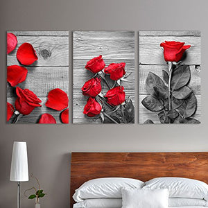 3 Panel Canvas Wall Art - Black and White Roses with Touch of Red Color - Giclee Print Gallery Wrap Modern Home Decor Ready to Hang